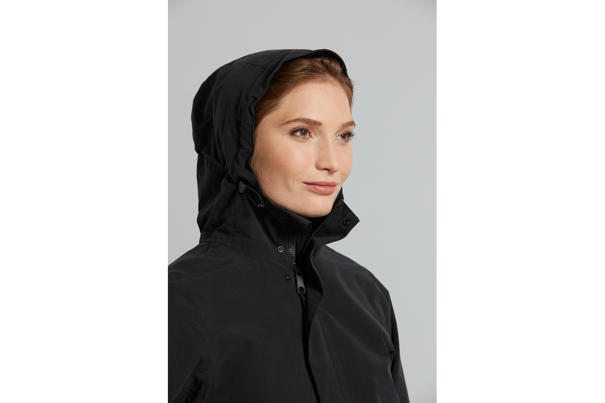 Gedetailleerde specificaties van de vrouwelijke regenjas Basil Moss: