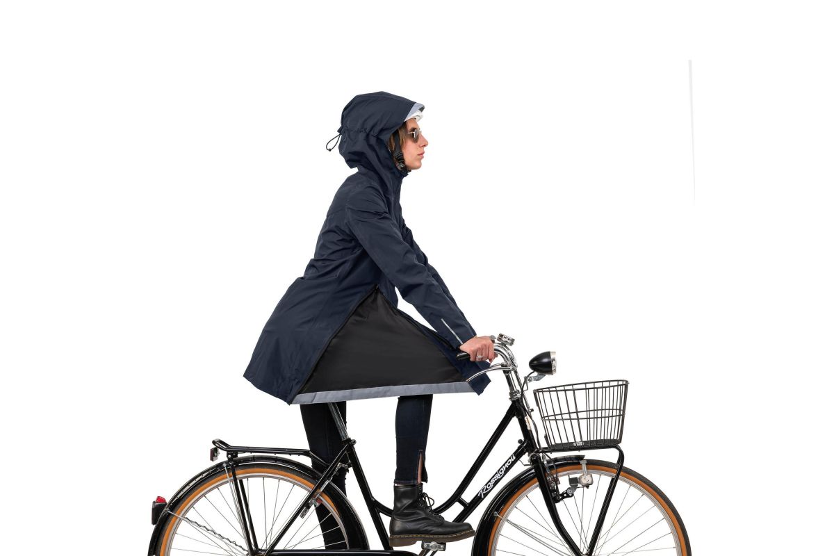 - 3/4-snit stadsfietsjack, om te bouwen tot een waterdichte cape voor beenbeschermers