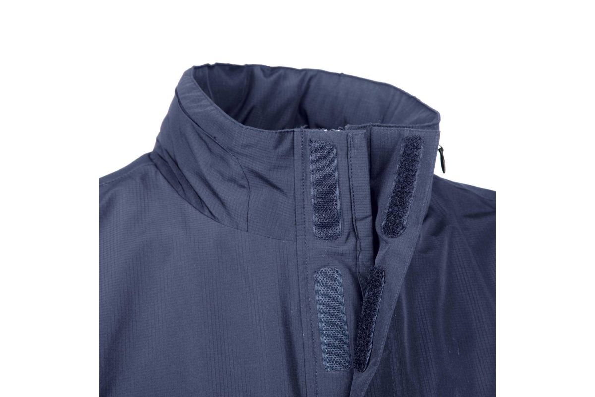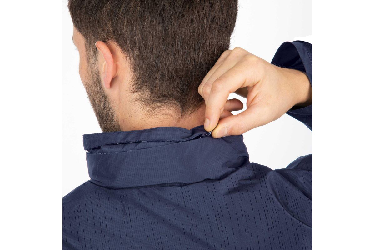 • Ergonomische regenbestendige capuchon die in de kraag is gevouwen