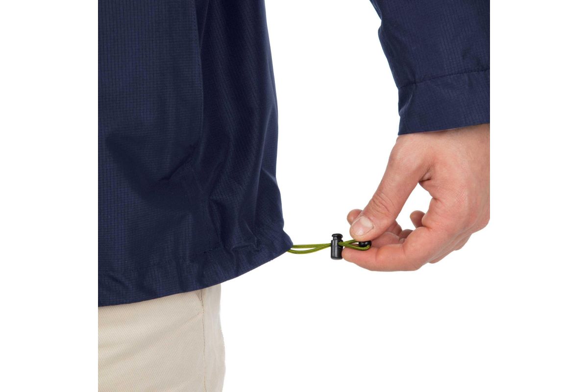 • Regenvanger op de centrale ritssluiting (inclusief kraag) met twee schuifregelaars