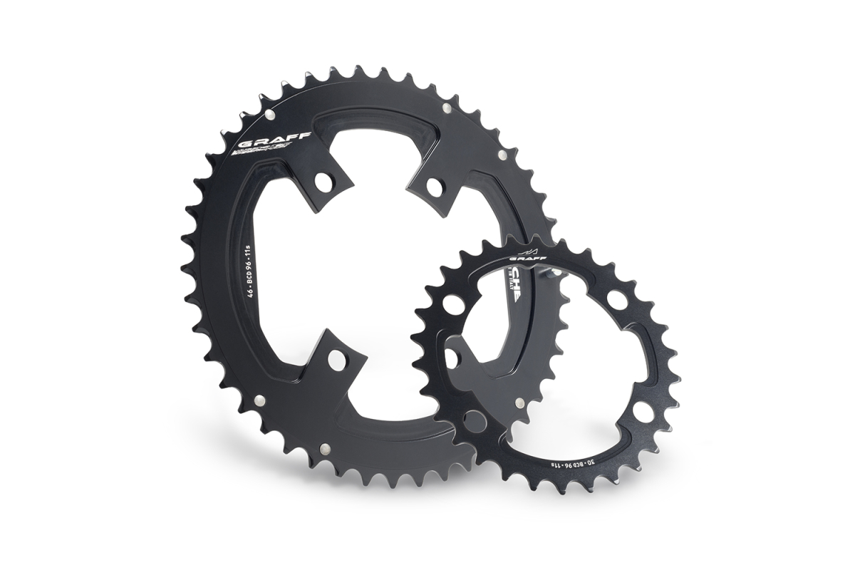 - Standaard bevestiging BCD 96 mm / 4 gaatjes : Compatibel met crankstellen Miche Graff en andere gelijkwaardige modellen.