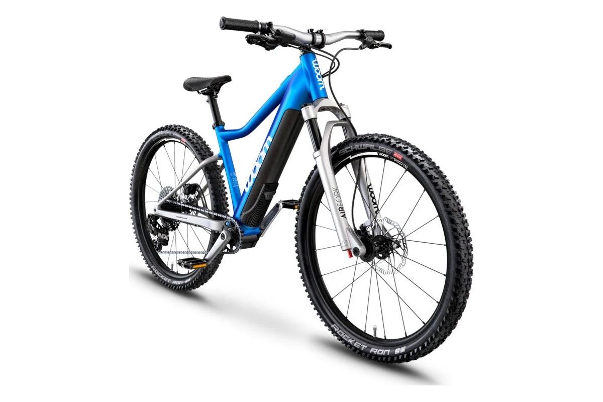 Door de E-WOOM uit te rusten met schijfremmen en een hydraulische vork, heeft Woom het beste van mountainbikes voor volwassenen genomen en ze omgezet in een fiets die is aangepast aan de morfologie van een kind.