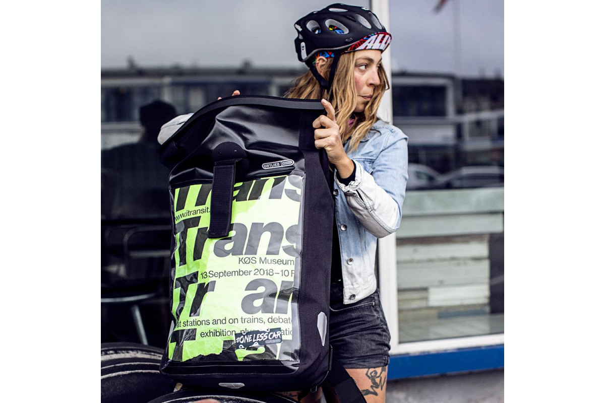 Ronduit clever: met de Messenger-Bag Pro wordt de koerier, die van hot naar haar door de stad rijdt, een mobiele reclamedrager – voor klanten en extra reclame-inkomsten of voor eigen rekening. Het transparante, waterdichte insteekvak aan de rug is groot genoeg voor affiches in A3-formaat die in het straatbeeld opvallen.