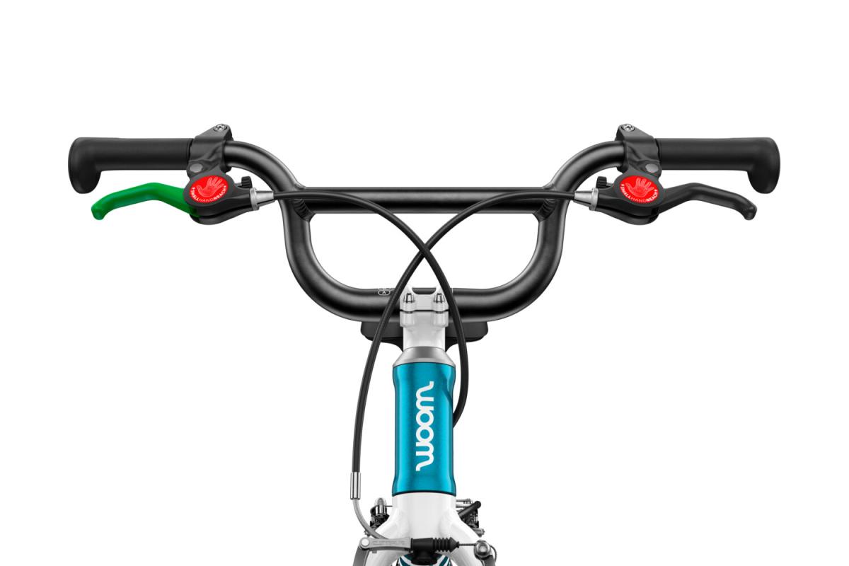 Efficiënt en intuïtief achterremmen met een groene hendel voor kleine handen.