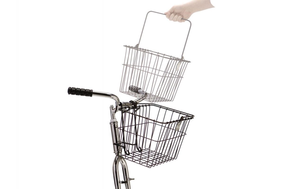 De elegante  Wald 133 fietsmand biedt het voordeel dat hij snel uit zijn steun kan worden gehaald om mee te nemen.