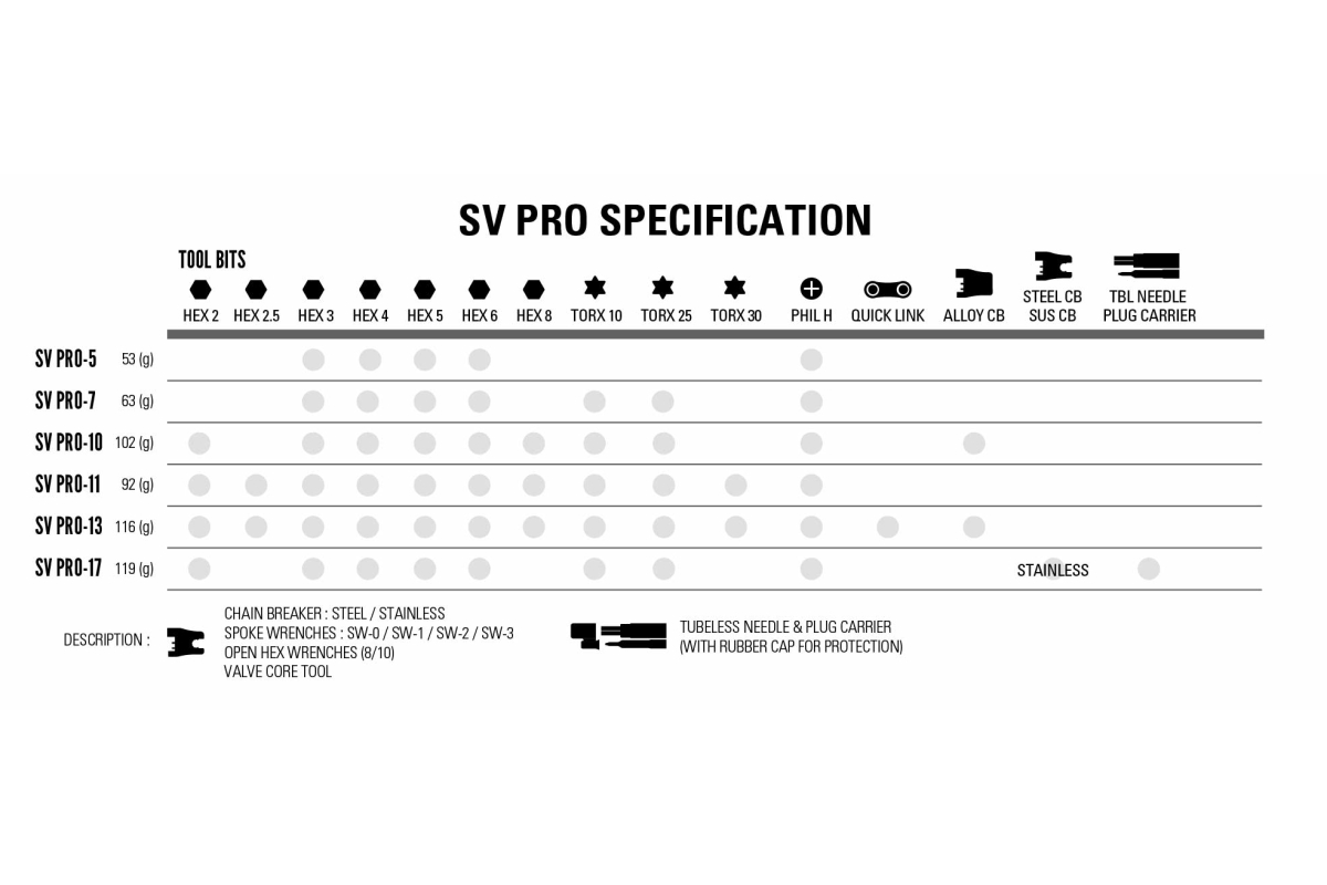 De multi-tools voor fietsen Lezyne SV PRO's combineren robuustheid, compactheid en elegantie dankzij hun constructie van van aluminium. Dat is het . Ze bieden een compleet assortiment aan gereedschappen om te voldoen aan de behoeften van fietsers op de weg, op het zand, op de berg of in de stad. Deze veelzijdige hulpmiddelen, die in verschillende versies verkrijgbaar zijn, garanderen prestaties en bruikbaarheid voor al uw uitgaven.