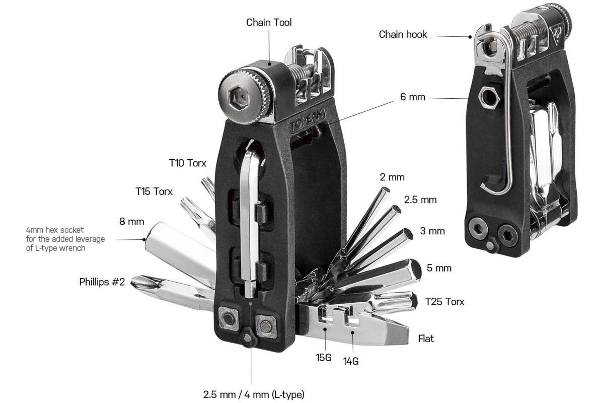 De Topeak Ninja 16+ multitool is een uiterst complete en compacte multifunctionele tool.