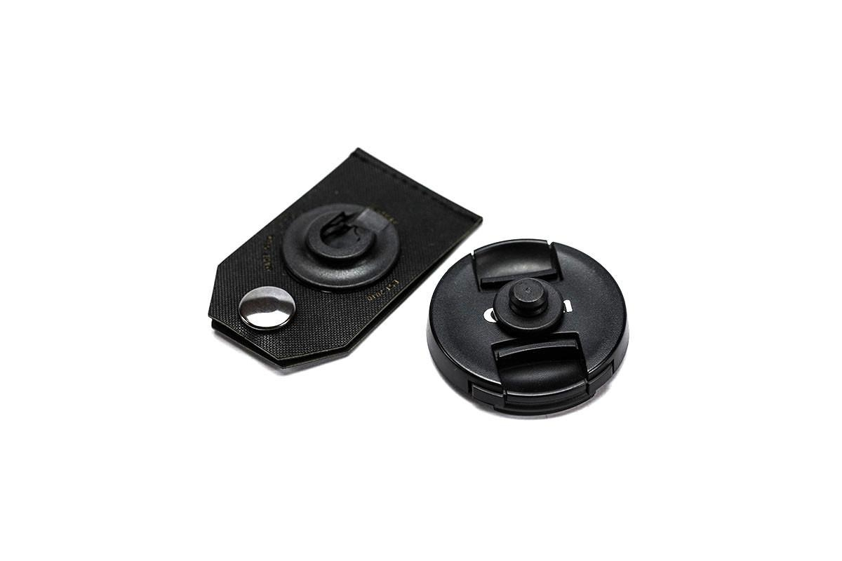 Zet hem vast magnetische aansluiting van Restrap op de achterkant van de lensdoos met de lijm, en je doos zal automatisch knippen als je hem naar de clip brengt.