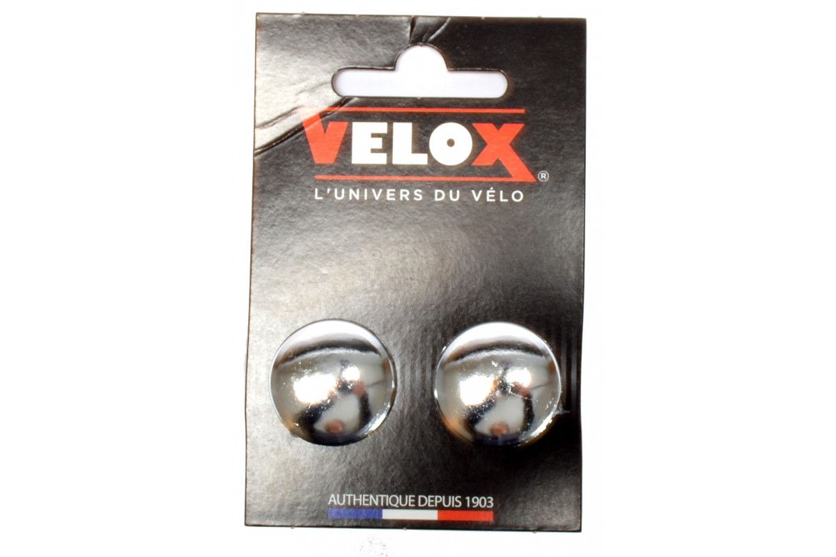 Het paar verchroomde Vélox stuurdoppen geven een mooie afwerking aan het stuurlint aan elk uiteinde van het stuur en geven een beetje vintage touch aan de fiets.