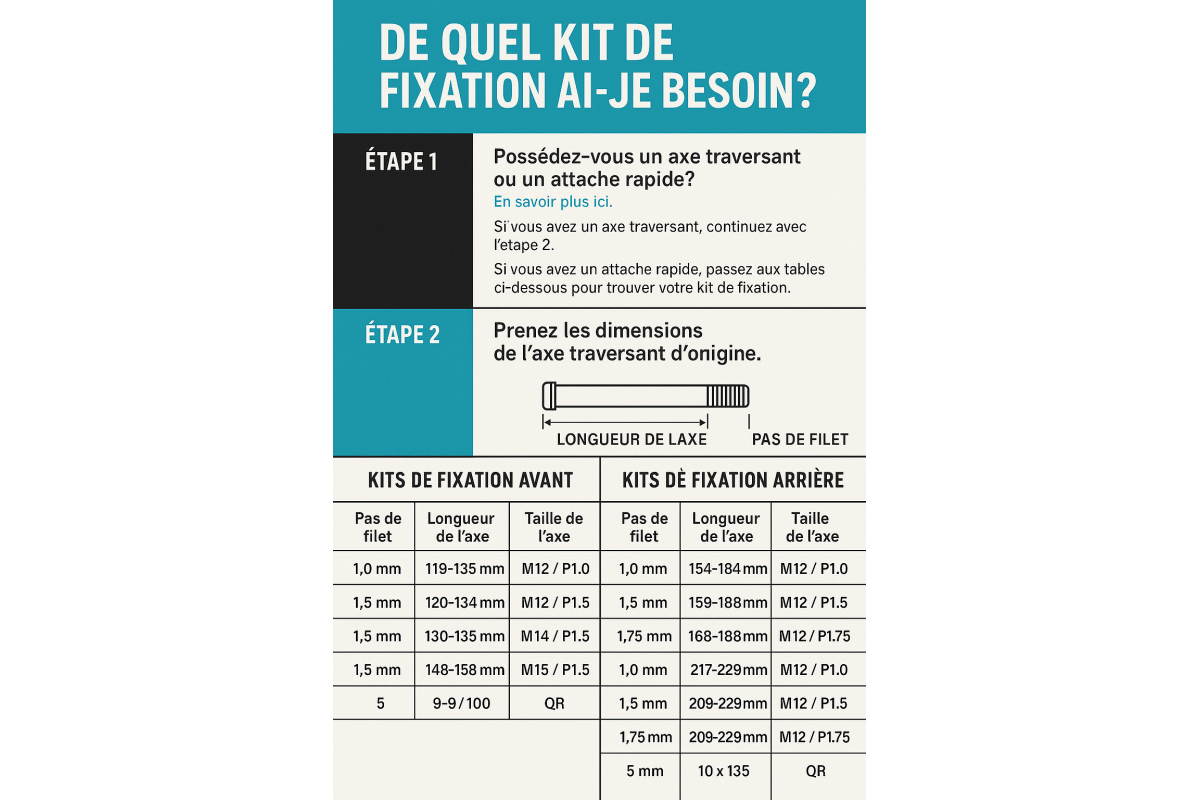 De Fit Kits een kofferbak stevig bevestigen Old Man Mountain op een vélo zonder oogjes of waarvan de oogleden niet zijn ontworpen om zware lasten te dragen. Dankzij een montage door axis doorlopen of snel blokkeren, bieden ze een stevige, betrouwbare en omkeerbare bevestiging, terwijl ze uw frame.