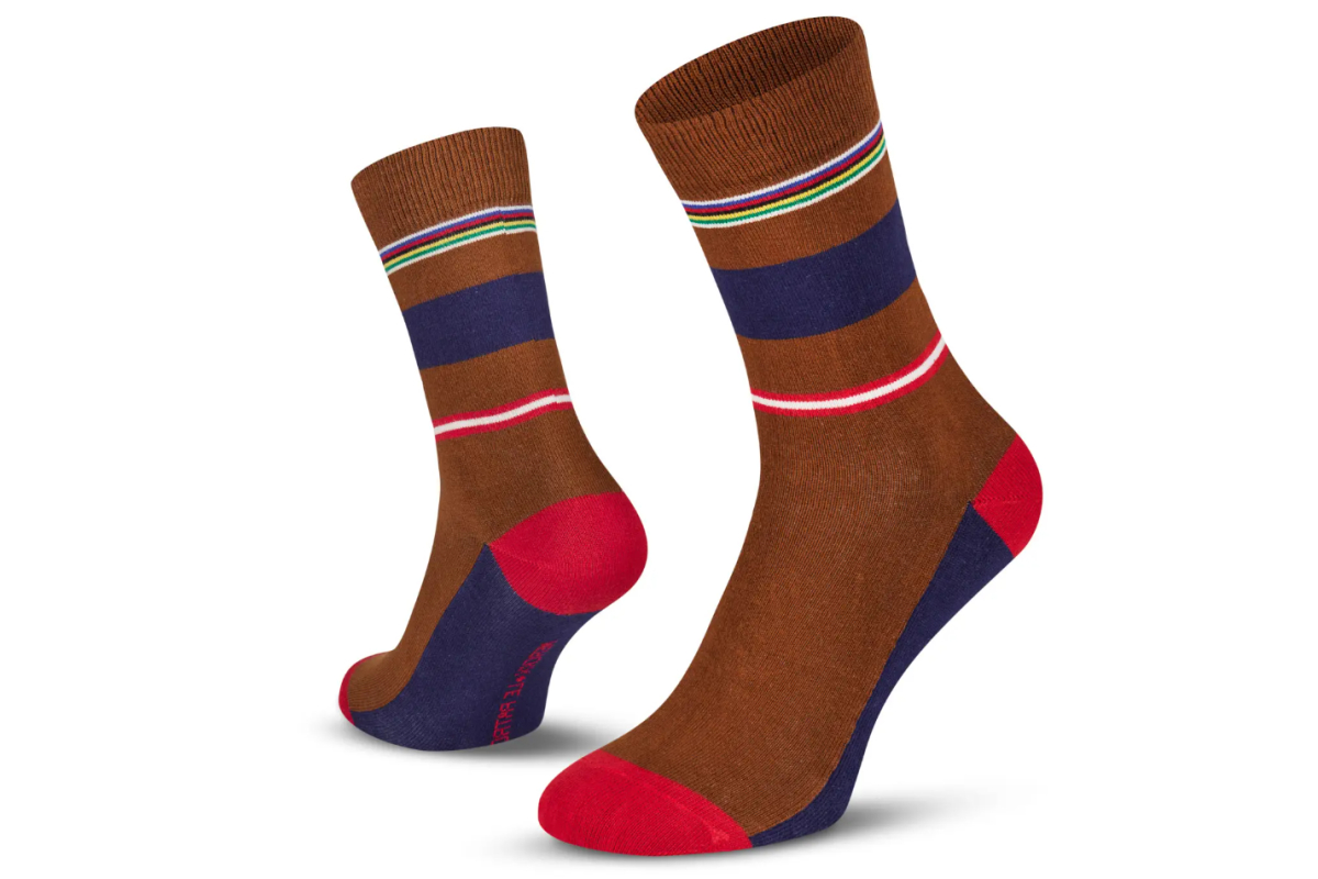 Comfortabele sokken van hoge kwaliteit katoen-blend. De designs zijn geïnspireerd op beroemde klassieke truien van legendarische wielerploegen uit vervolgen tijden. De retro kleurcombinaties zijn een feest der herkenning en roepen emoties op bij elke wielerfan! Draag deze kleurige sokken onder je pak of casual outfit voor een verrassend effect.