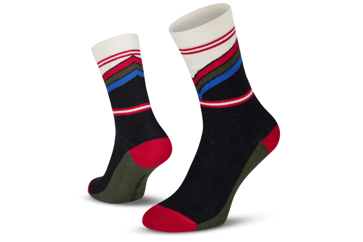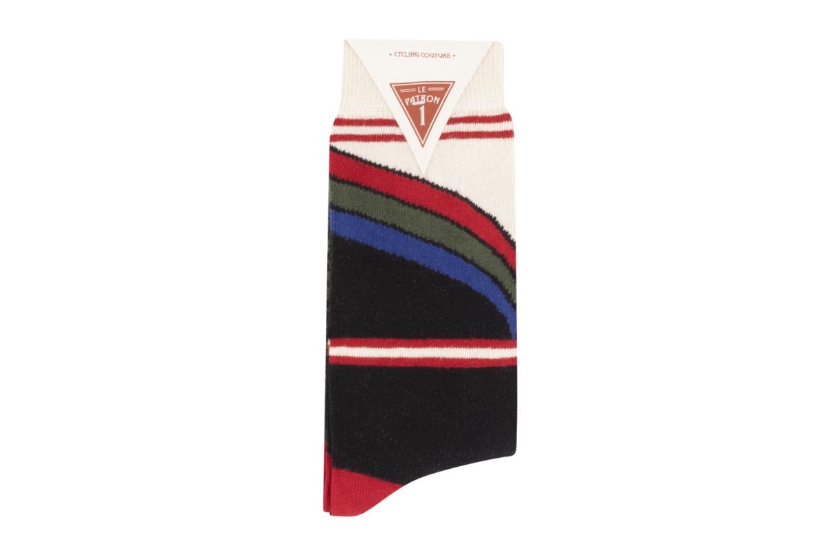 Comfortabele sokken van hoge kwaliteit katoen-blend. De designs zijn geïnspireerd op beroemde klassieke truien van legendarische wielerploegen uit vervolgen tijden. De retro kleurcombinaties zijn een feest der herkenning en roepen emoties op bij elke wielerfan! Draag deze kleurige sokken onder je pak of casual outfit voor een verrassend effect.