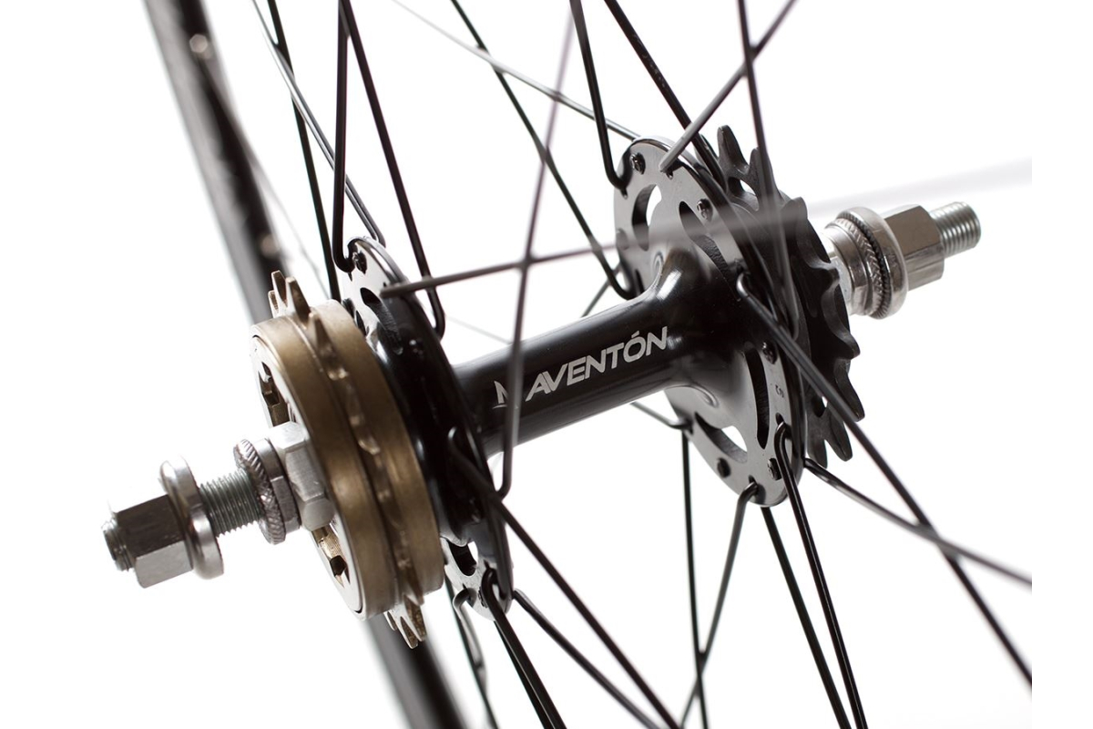 Set rijklare wielen, voorzien van afgedichte Aventon-naven, Kenda-banden en binnenband, een 15T-tandwiel en een 16T-vrijloop, allemaal al gemonteerd!