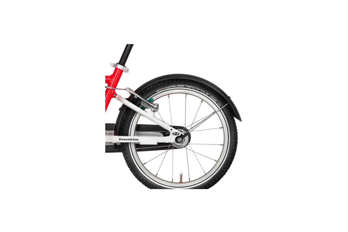 Snap spatborden voor Woom kinderfietsen beschermen je kind effectief tegen water en modder. Ze wikkelen de band lateraal en radiaal, zodat alle druppels daadwerkelijk worden opgevangen en teruggeduwd.