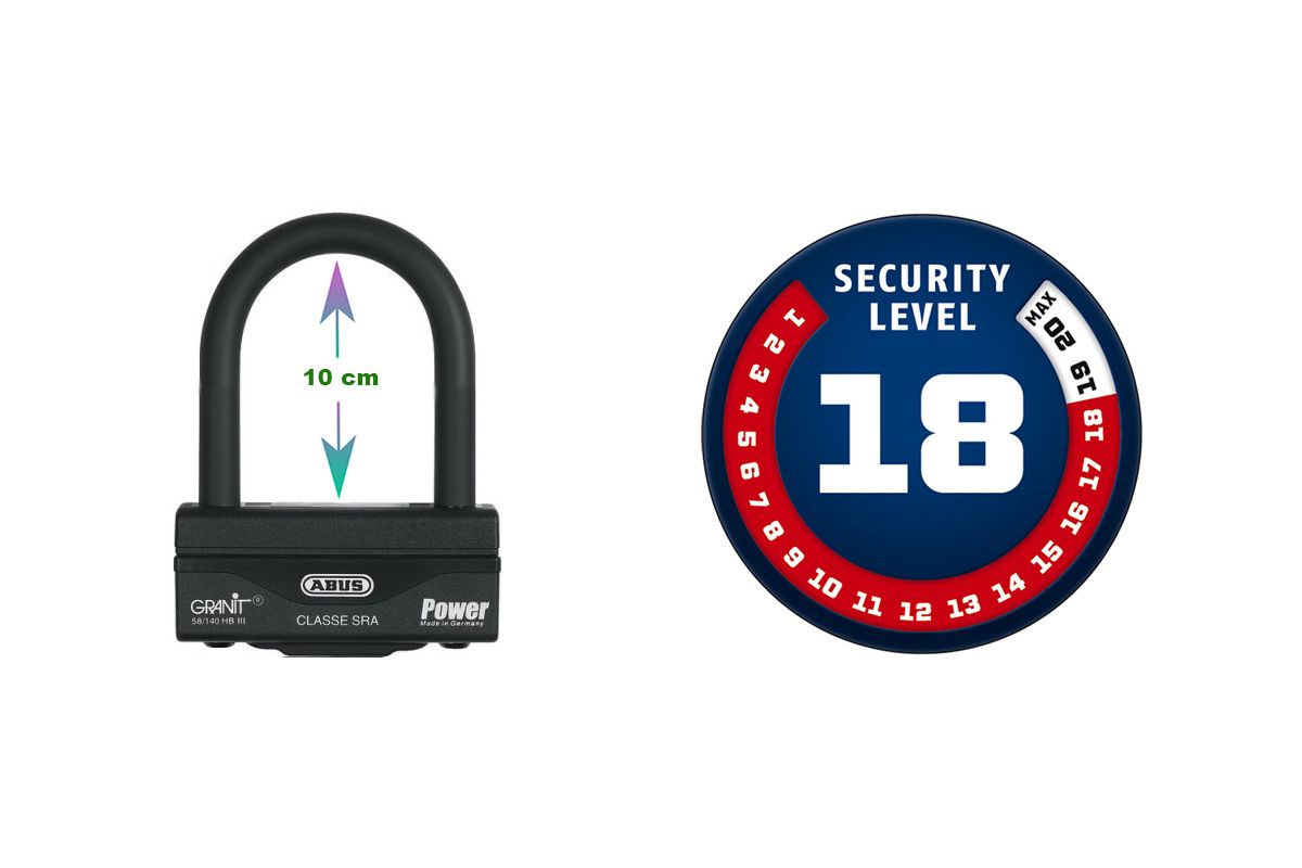 Met een uitstekend veiligheidsniveau van 18/20, deze slot Abus bezit de sRA- en NF/FFMC-normen dus hij is erkend door de verzekeraars. Het biedt de beste bescherming voor je twee wielen.