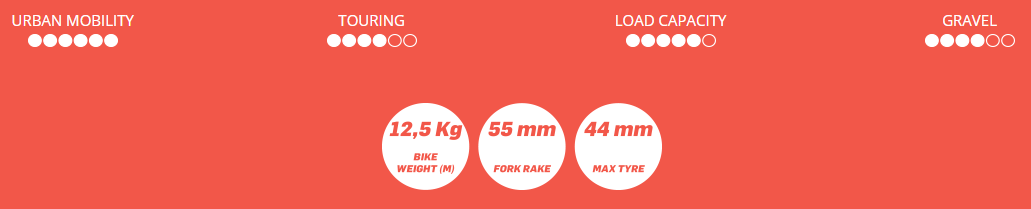 Deze nieuwe vintage is volledig nieuw: het stuur is nu vlak, de geometrie is licht hellend en de Strada is uitgerust een bijzonder sterk stalen rek.