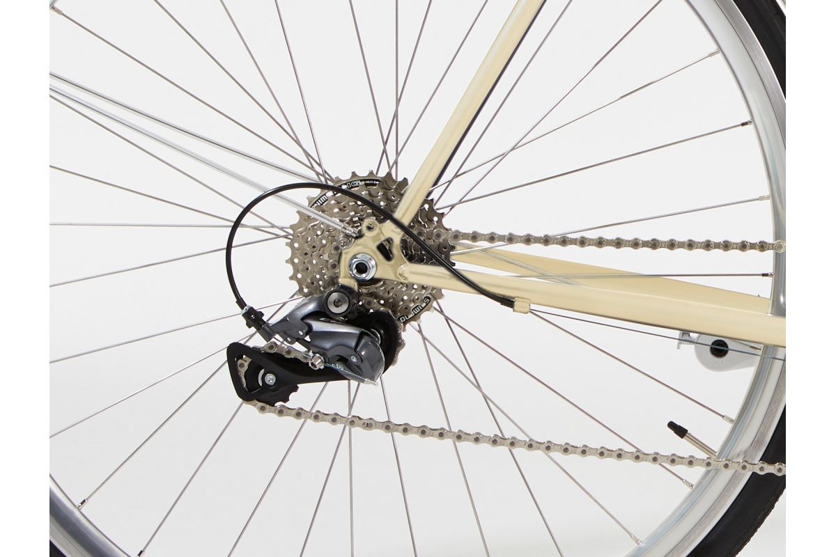 Gesneden voor de stad en al uw dagelijkse ritten, zal hij ook zeer comfortabel zijn over lange afstanden dankzij de betrouwbaarheid van zijn Shimano Claris-transmissiegroep en de lichtheid van zijn Chromo-stalen frame.