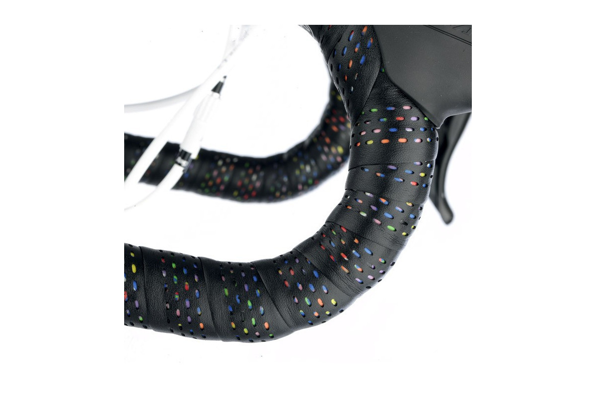 CINELLI Caleido Dot stuurlint is verkrijgbaar in zwart of wit. De veganistische synthetische lederen textuur onthult de caleidoscoopdecoratie om je Cinelli Caleido look te completeren.