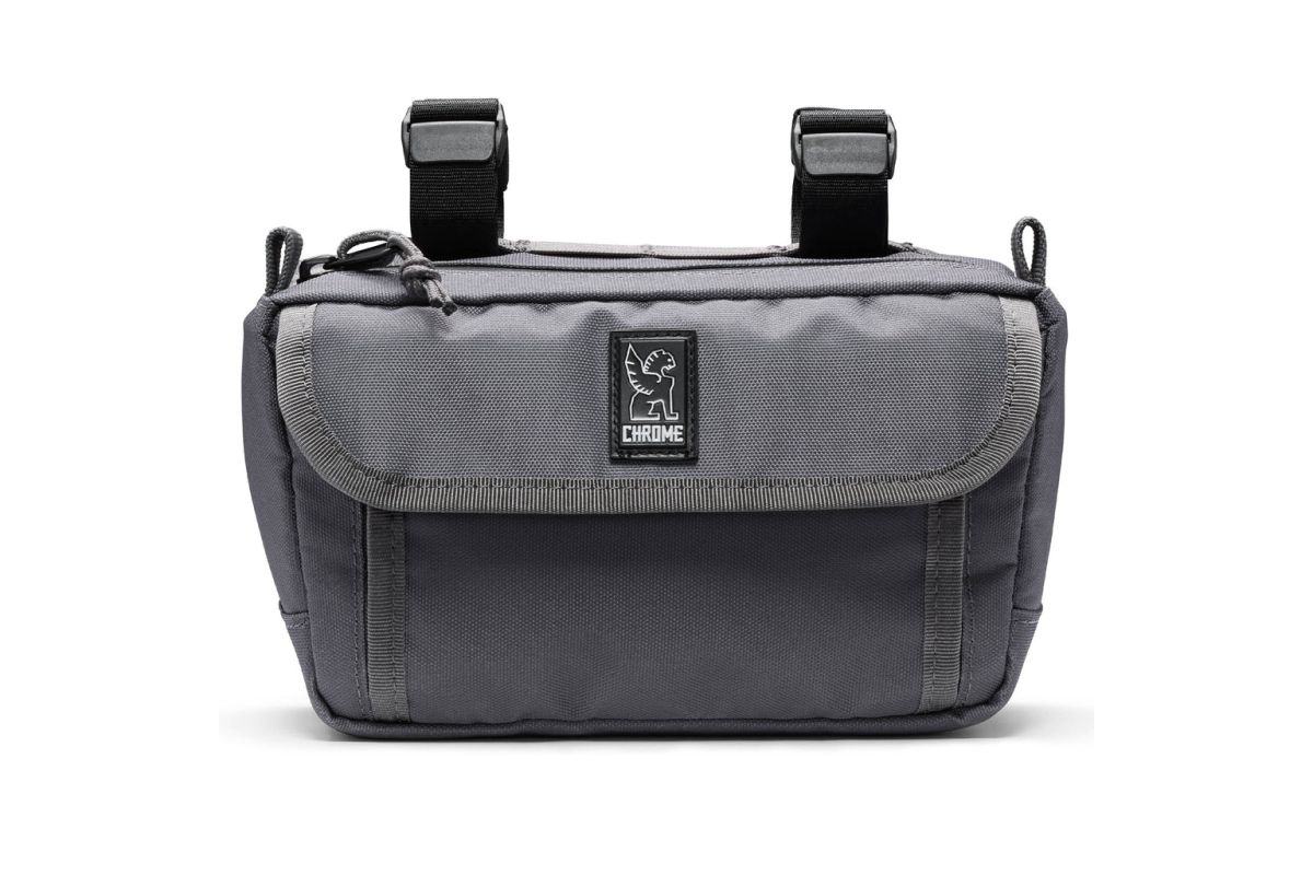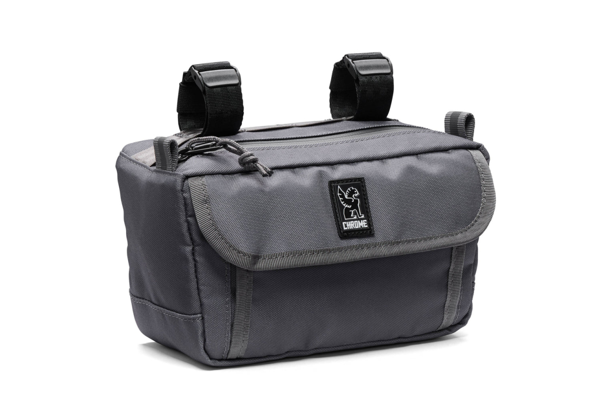 Hier de tas van stuur van vélo van het merk Chrome Industries Holman gemaakt van gerecycled en waterdicht materiaal.