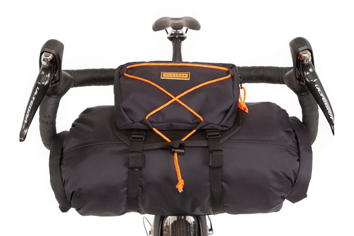 Deze musthave Restrap stuurtas en het handige accessoirevak kun je veel meenemen op je graveltocht zonder bagagerekken te hoeven dragen.