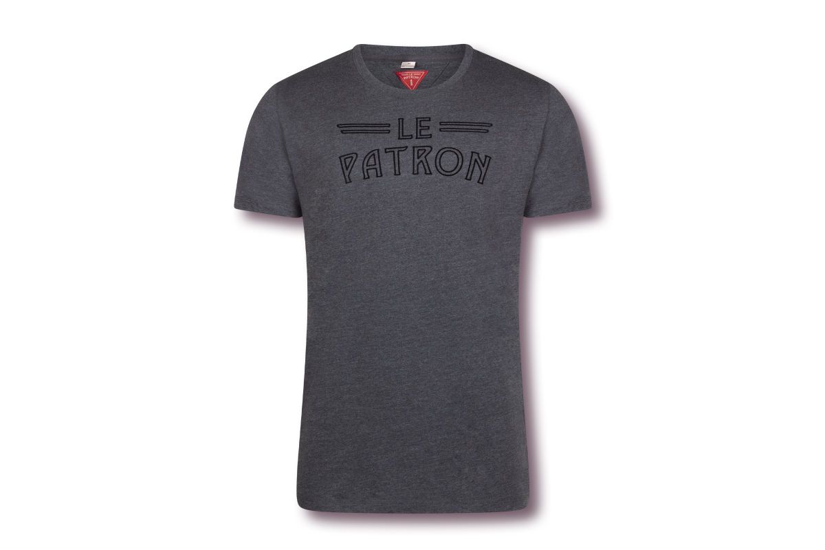 Dit Flock print T-Shirt is bedrukt met het Le Patron logo in een donkerblauwe kleur. Het product is gemaakt van soepele melange jersey in een maxin van katoen en polyester. Hierdoor is het shirt niet alleen erg comfortabel, maar blijft het ook nog eens voor een lange tijd mooi en kreukelvrij. Door zijn eenvoudige print is het shirt geschikt voor allerlei outfits.