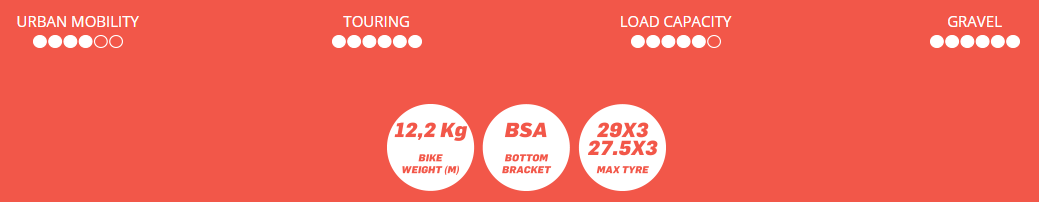 Het geheel is ontworpen voor extreme bikepacking : de ruimte voor de banden is enorm en dankzij de talrijke bevestigingsogen kun je een astronomische hoeveelheid bagage vervoeren.