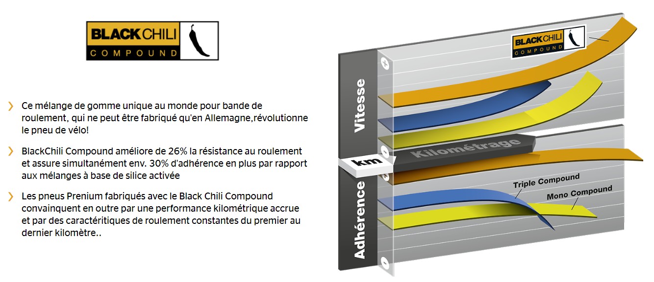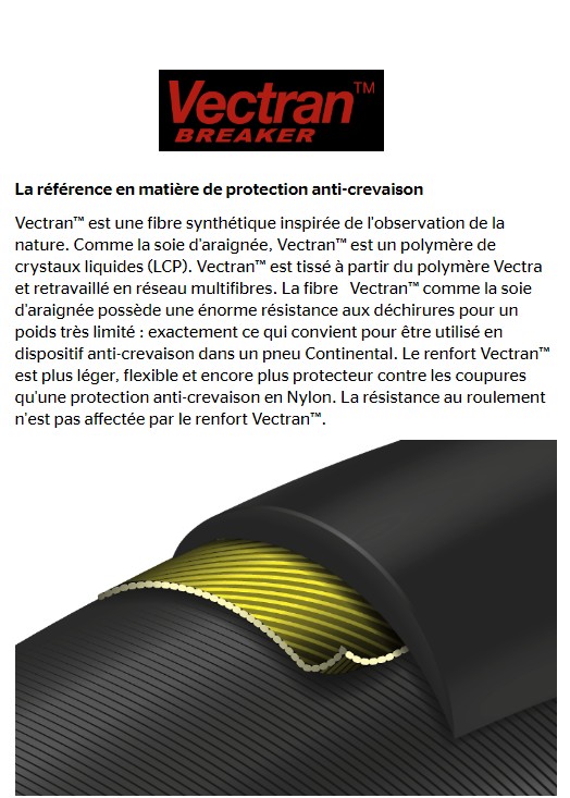 Het is uitgerust met iconische technologieën Continental Zwarte Chili en Continental Vectran Breaker.