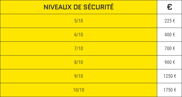Het maximale vergoedingsbedrag is afhankelijk van het beveiligingsniveau van uw slot: