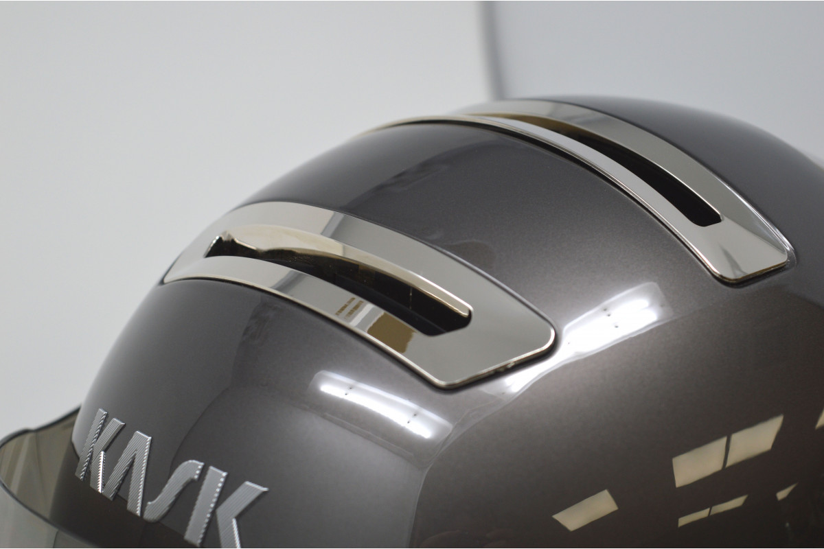 Ten slotte moet je de Kask Urban R en zijn voorganger in de handen zodat de verschillen duidelijk zijn maar een grote inspanning werd gemaakt door de ambachtslieden van Kask : De buitenkant van de dop bedekt nu volledig de binnenkant van de dop, zodat het polystyreen schuim is nu niet meer zichtbaar. Dat is het . De buitenkant van de ventilatie heeft een verschillend einde met de rest van de kap. Ook de logo Kask is gevormd. Het is niet langer een sticker zoals vroeger.