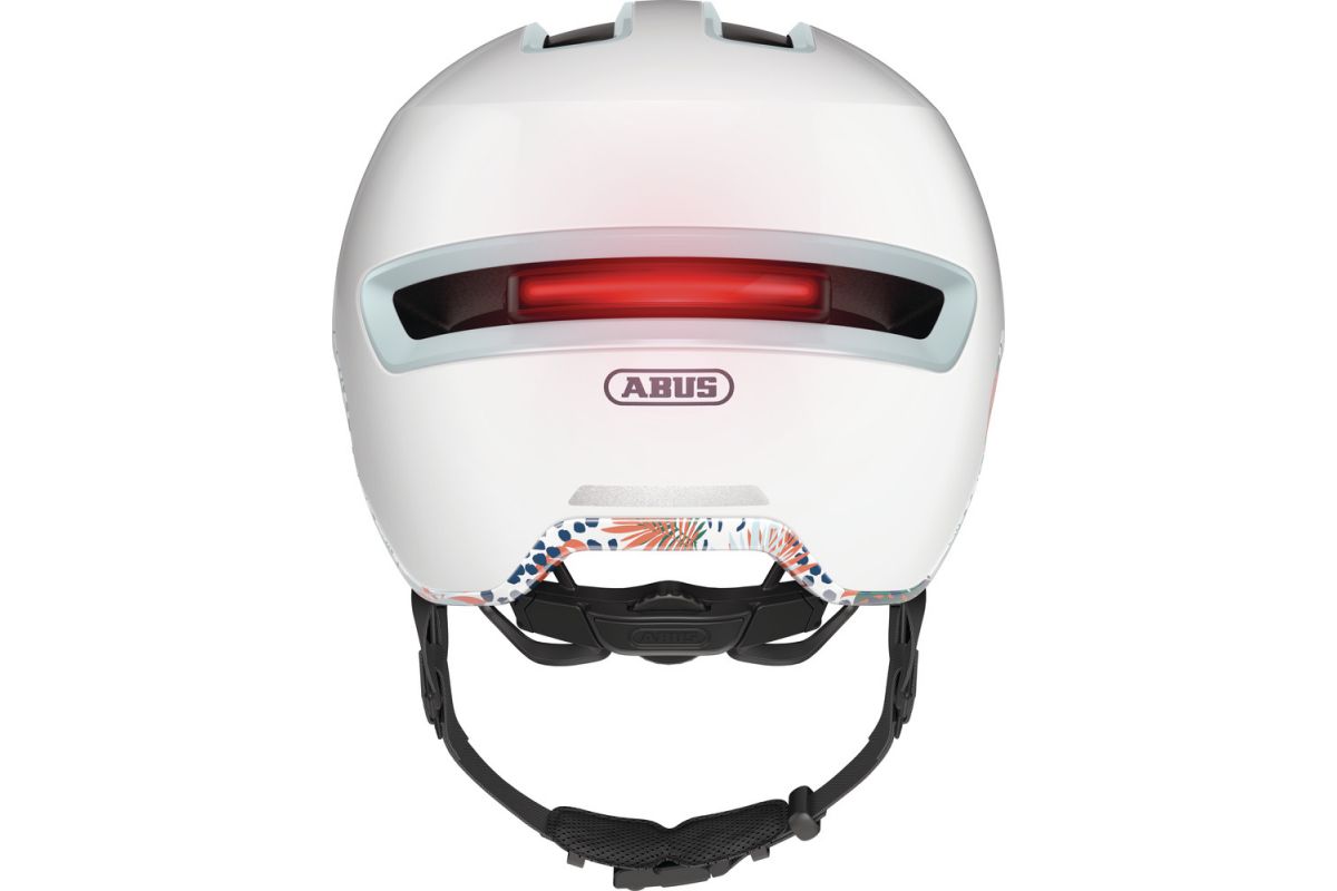 Take the deep fit of modern mountain bike helmets, the head shape of the GameChanger racing bike helmet and add a dose of sci-fi styling for the road. Now add the rechargeable, magnetically attached rear LED and voilà - you have a modern helmet for the city! At the back of the head is a magnetic USB light strip that has four different light modes. The light duration depends on whether Power Mode, Eco Mode, Blink Mode or Pulse Mode is active. In addition to more plain, classic colour designs, there are also signal colours, for example for groups of people who work in the security industry. For all those who ride their bike with style and protection, there is no better option than the ABUS HUD-Y Urban helmet.