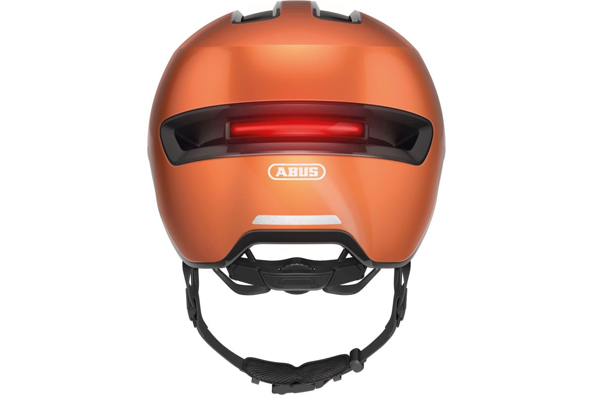 Take the deep fit of modern mountain bike helmets, the head shape of the GameChanger racing bike helmet and add a dose of sci-fi styling for the road. Now add the rechargeable, magnetically attached rear LED and voilà - you have a modern helmet for the city! At the back of the head is a magnetic USB light strip that has four different light modes. The light duration depends on whether Power Mode, Eco Mode, Blink Mode or Pulse Mode is active. In addition to more plain, classic colour designs, there are also signal colours, for example for groups of people who work in the security industry. For all those who ride their bike with style and protection, there is no better option than the ABUS HUD-Y Urban helmet.