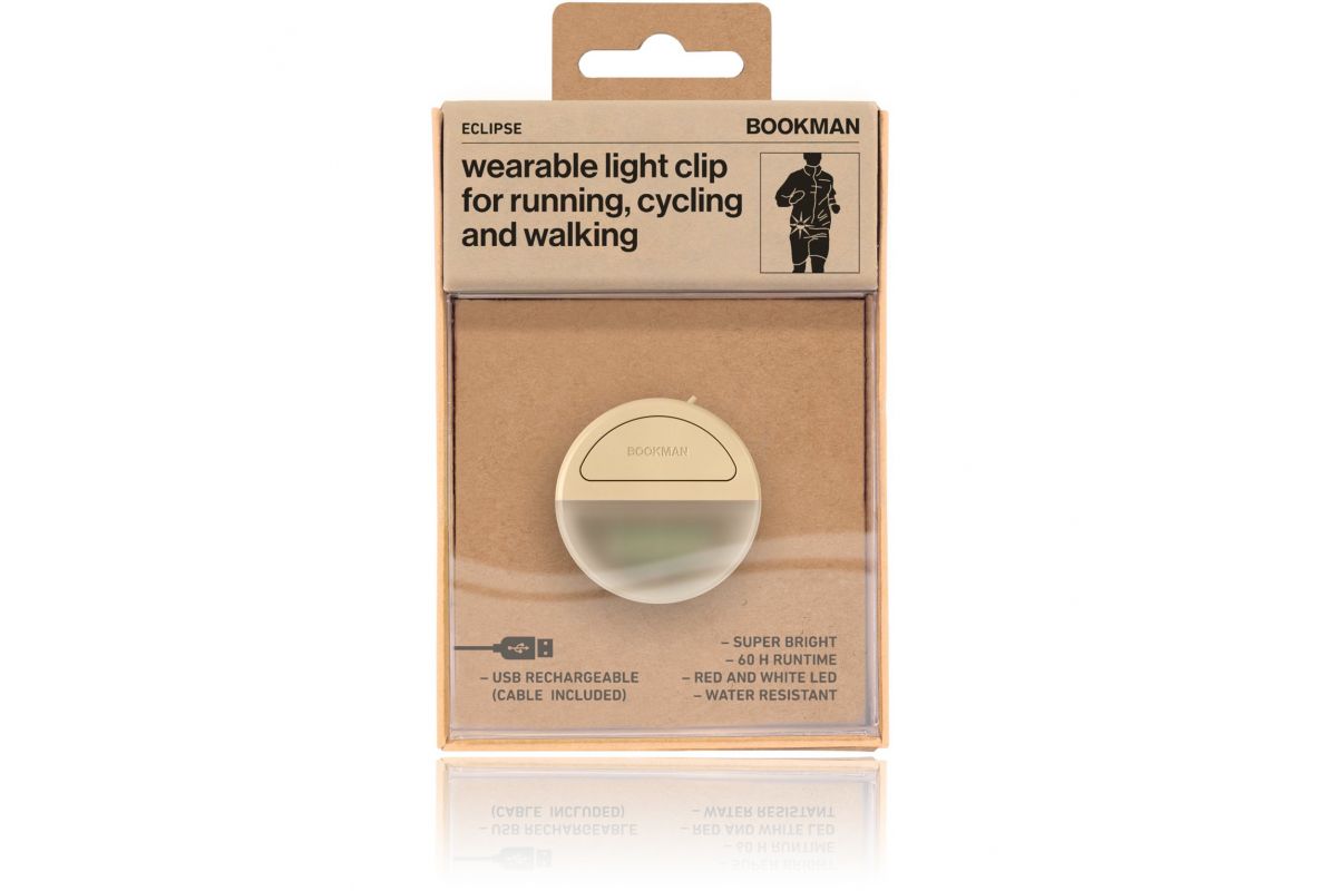 BOOKMAN Eclipse Bike Light is een draagbare, USB-oplaadbare, krachtige clip die je zichtbaarheid en veiligheid in het verkeer geeft. Ideaal voor je fietstochten maar ook voor hardlopen. Je klikt het met gemak aan elke tas of kledingstuk.