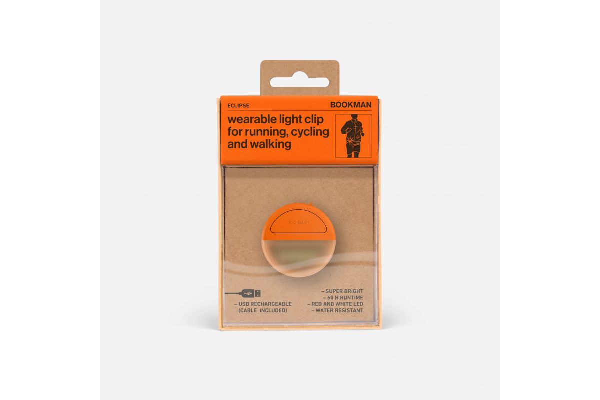 BOOKMAN Eclipse Bike Light is een draagbare, USB-oplaadbare, krachtige clip die je zichtbaarheid en veiligheid in het verkeer geeft. Ideaal voor je fietstochten maar ook voor hardlopen. Je klikt het met gemak aan elke tas of kledingstuk.