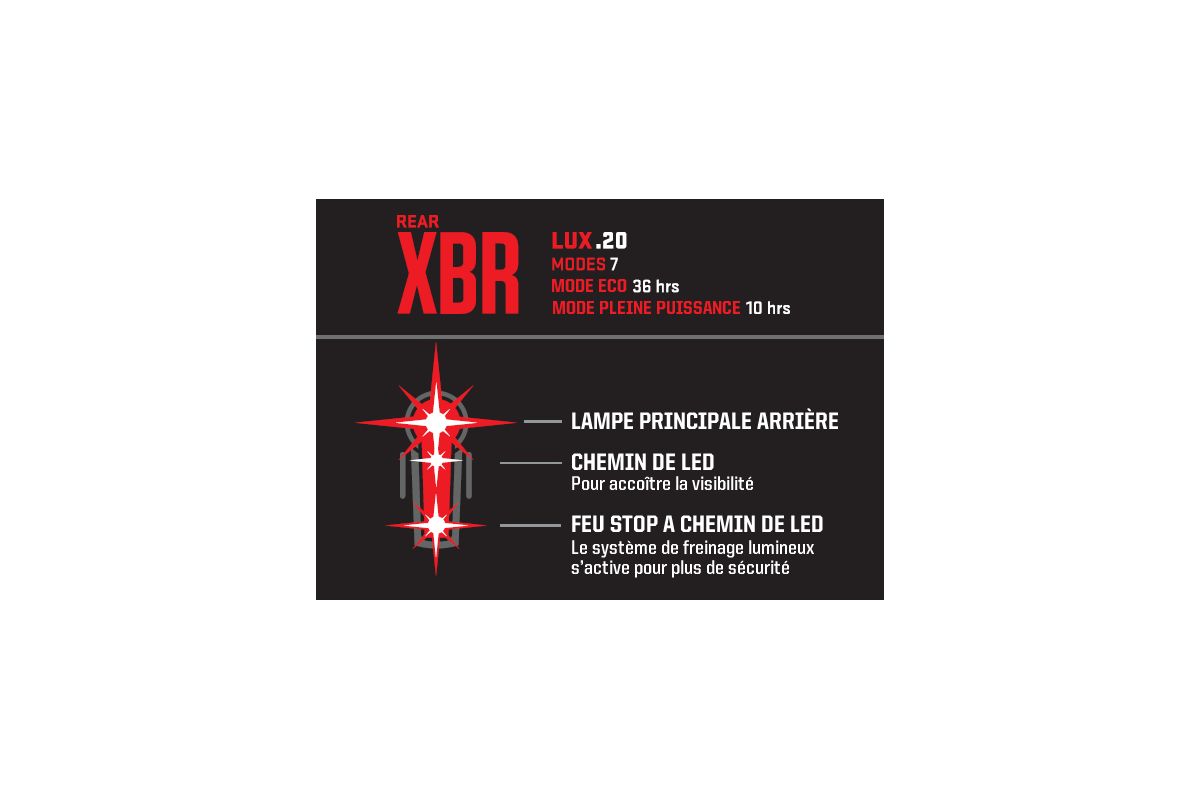 In deze Kryptonite XBR-versie is de verlichting uitgerust met een versnellingsmeter die de ontsteking van een remlicht activeert tijdens het vertragen .