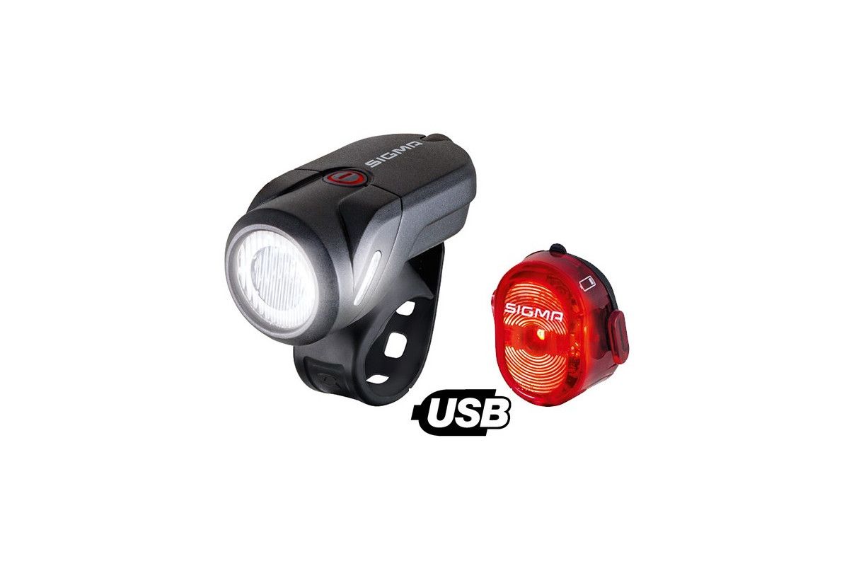 Verlichting AV+AR USB Aura 35 is een lot van twee lichten voor vélo voor- en achteroplaadbaar via USB.