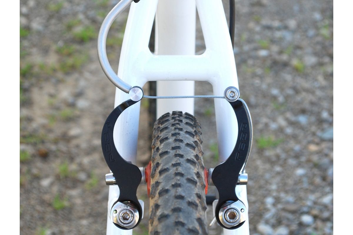 De gebogen remklauwarmen bieden ruimte voor brede gravel banden.