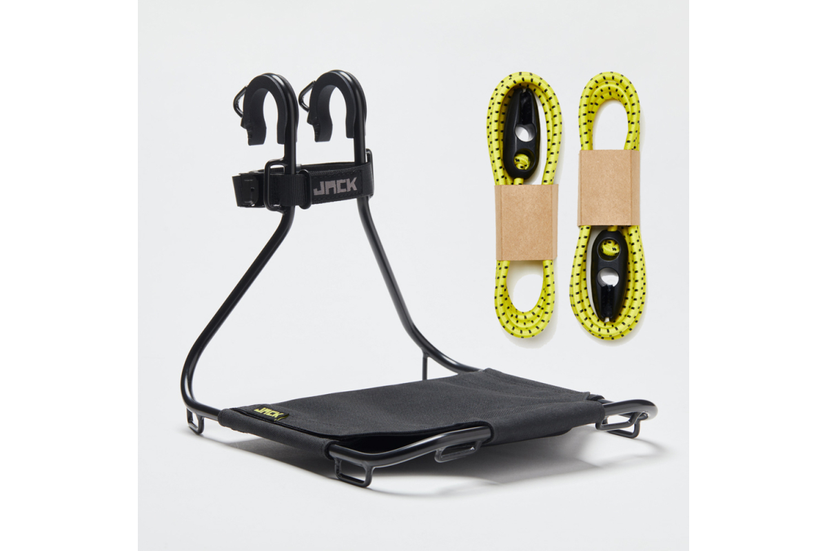 Het Jack the Bike Rack is een universeel voorrek dat op bijna elke fiets past, zonder speciaalgereedschap of bevestigingsmiddelen. Dankzij het riembevestigingssysteem kan het in een oogwenk worden gemonteerd en verwijderd en biedt het een praktische en snelle oplossing voor het vervoeren van je spullen op de fiets.