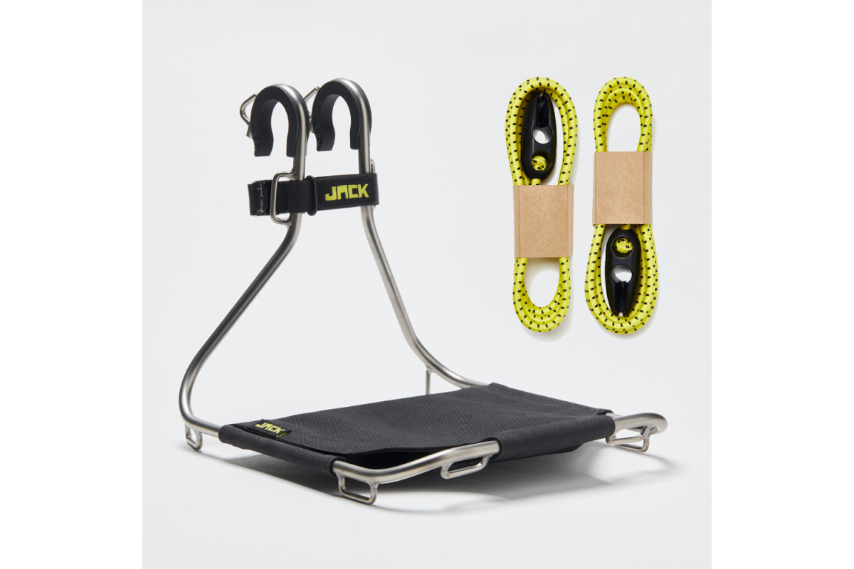 Het Jack the Bike Rack is een universeel voorrek dat op bijna elke fiets past, zonder speciaalgereedschap of bevestigingsmiddelen. Dankzij het riembevestigingssysteem kan het in een oogwenk worden gemonteerd en verwijderd en biedt het een praktische en snelle oplossing voor het vervoeren van je spullen op de fiets.