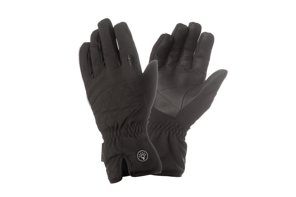 Het paar lichtgevende handschoenen Tucano Urbano Lux Lady is uitgerust met een kleine LED.