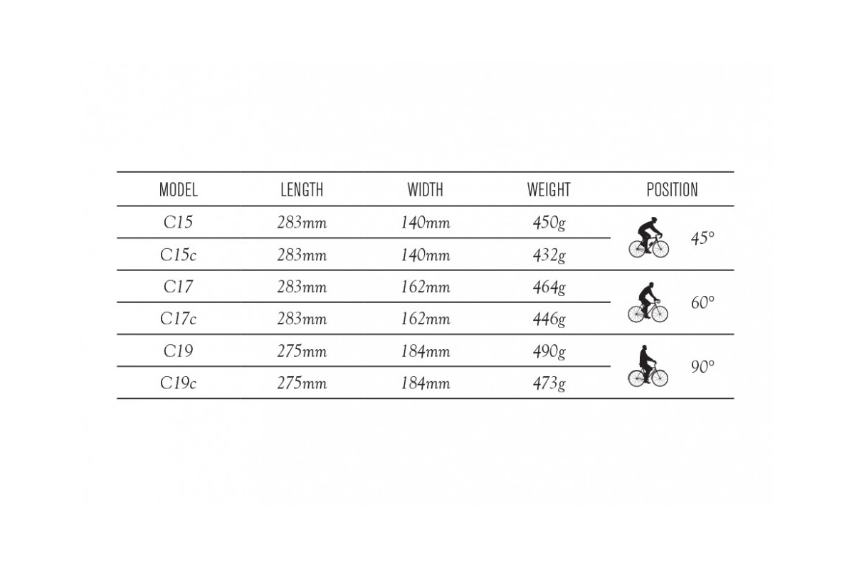 Het model BROOKS Cambium C15 is ontworpen voor sportieve rijders, het model BROOKS Cambium C17 voor stedelijk rijden en het model BROOKS CambiumC19 voor langere tourritten.