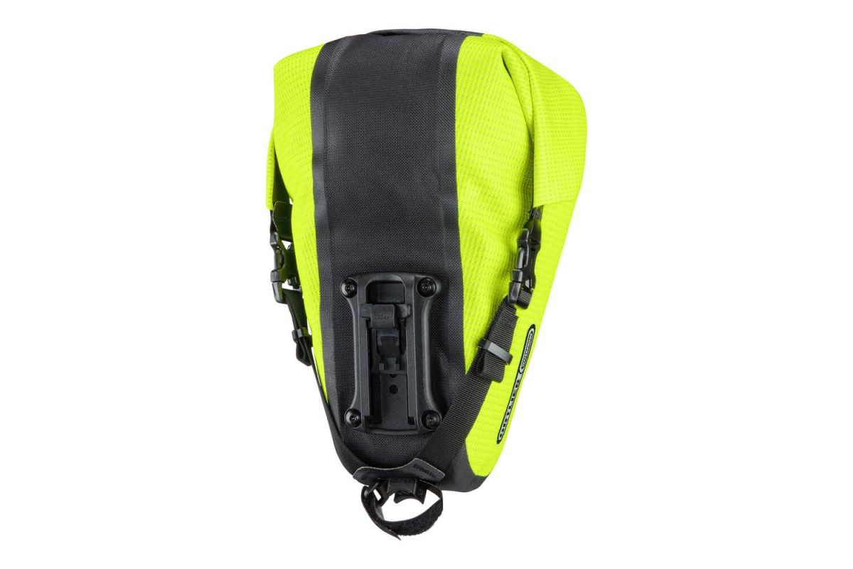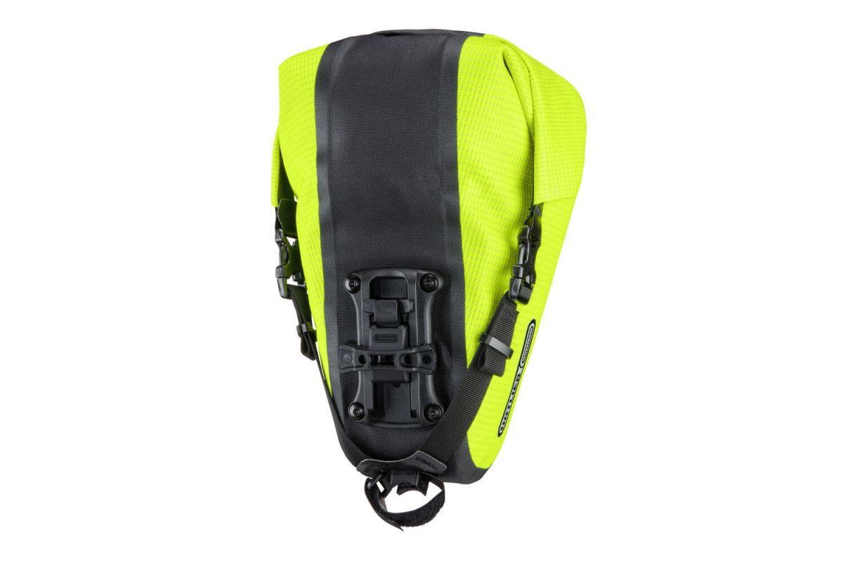 De Saddle-Bag Two wordt met de verstelbare kliksluiting direct aan het zadel bevestigd. De adapter is uiterst lichtlopend en maakt een snelle plaatsing en verwijdering mogelijk. Bovendien is de kliksluiting compatibel met het vorige model van de Saddle-Bag Two – zo kan ze bv. voor verschillende fietsen gebruikt worden. Voor extra stabiliteit zorgt een klittenband aan de zadelpen die het ongewenste heen en weer schommelen verhindert. Een bijkomend voordeel: de grote zadeltas vervangt bijna het achterste spatbord en houdt een groot deel van het spatwater tegen.